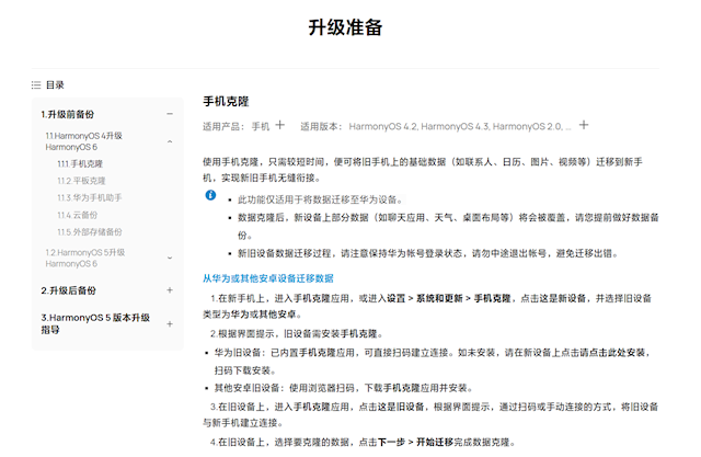 临近发布会,华为已经在官网更新了HarmonyOS系统的升级准备教程,其中介绍了从HarmonyOS 4和HarmonyOS 5升级至HarmonyOS 6系统的准备工作,主要是一些备份教程等。